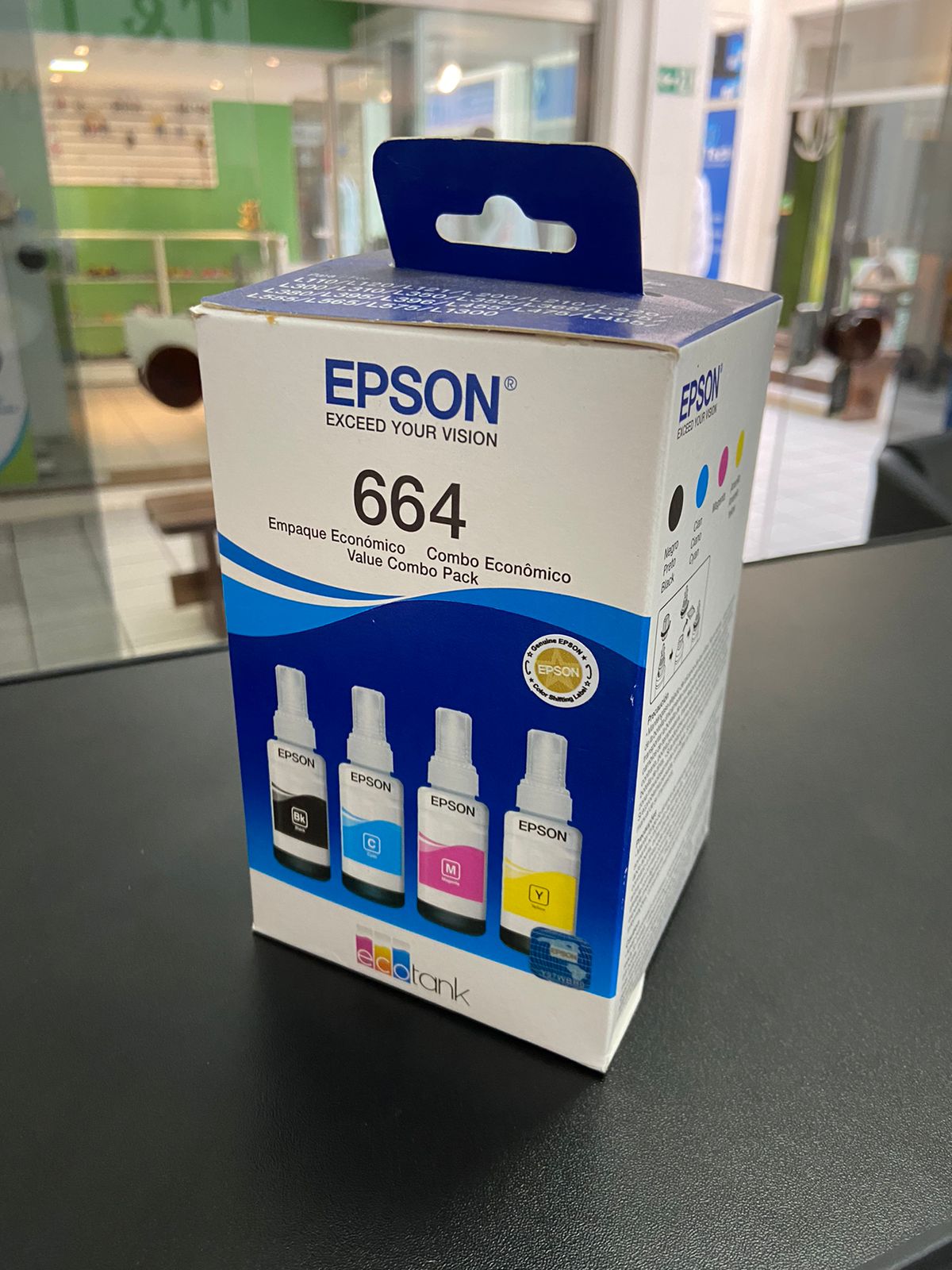 <div R$ 50,00Kit Garrafa Epson T664 para Ecotank Preto, Ciano, Magenta, Amarelo – 1 UN
